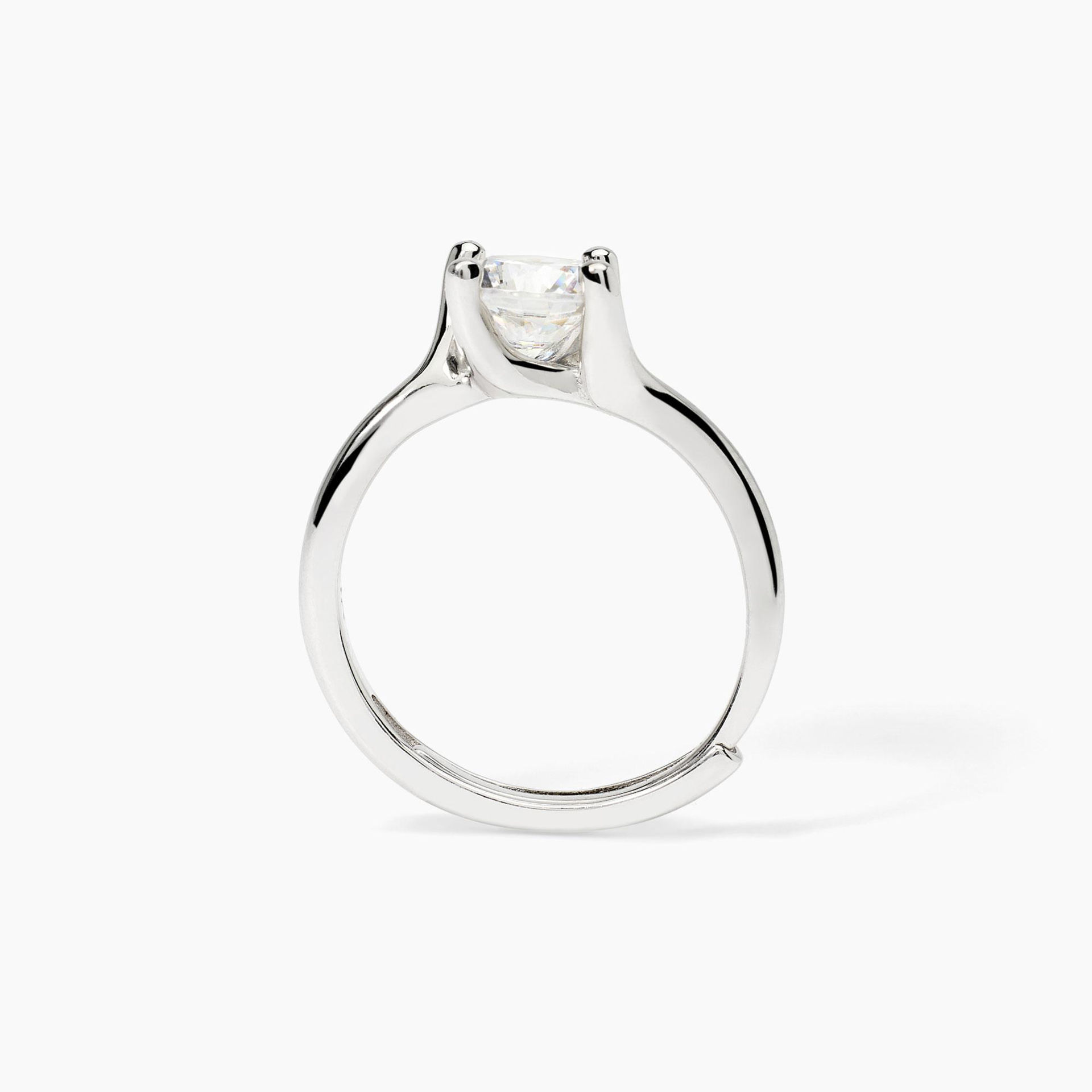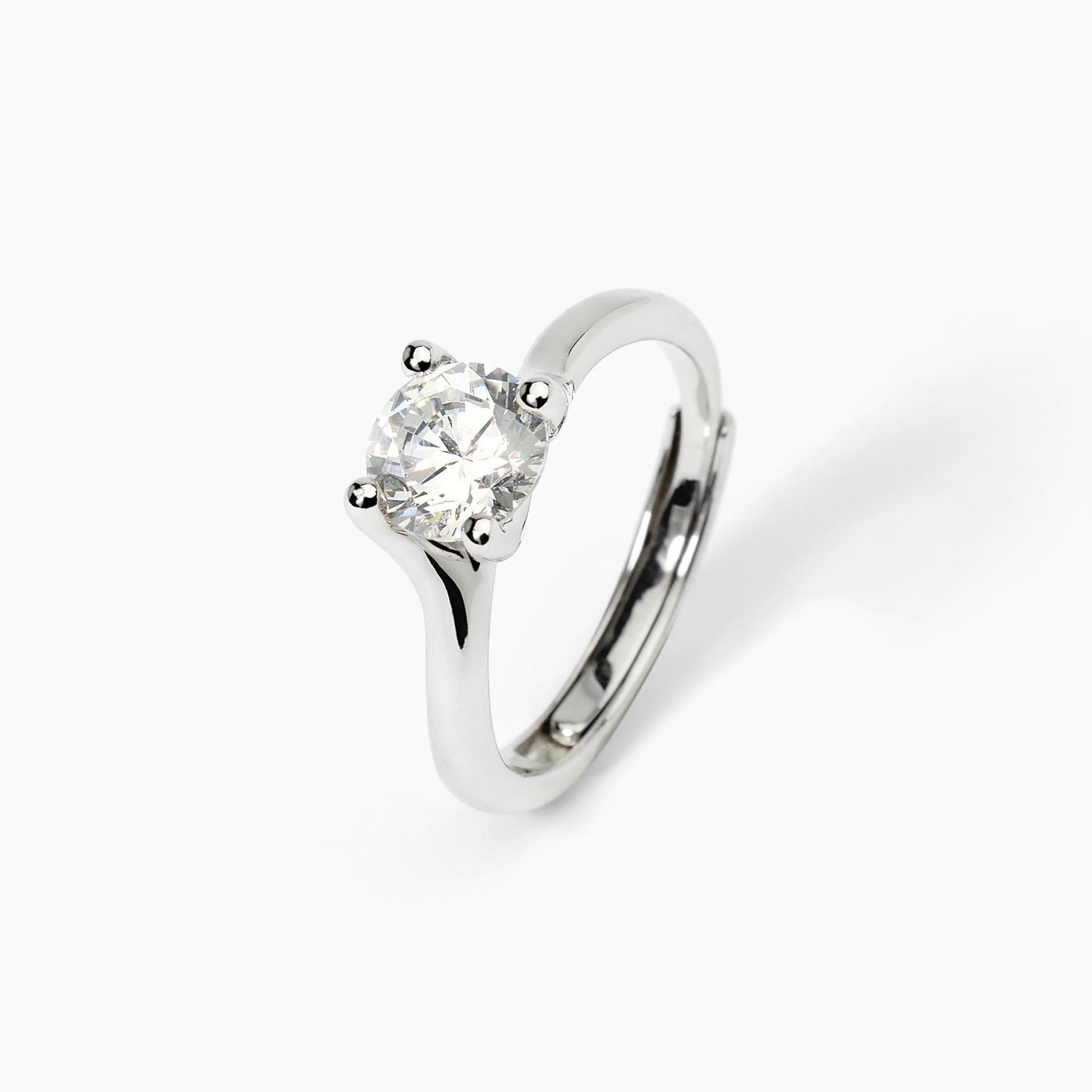 Anello da donna solitario regolabile in argento rodiato con zircone.