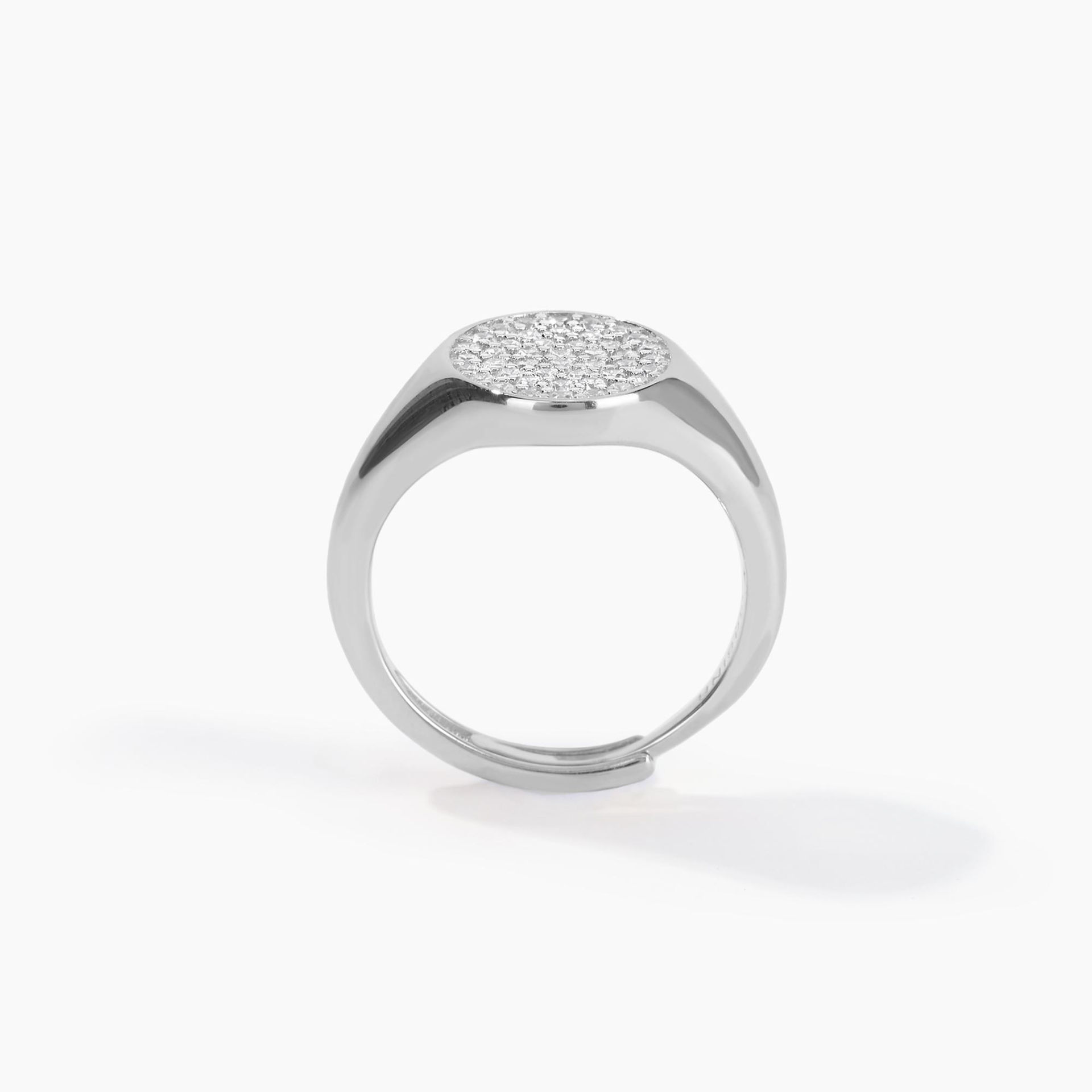 Anello chevalier in argento con pavé di zirconi.