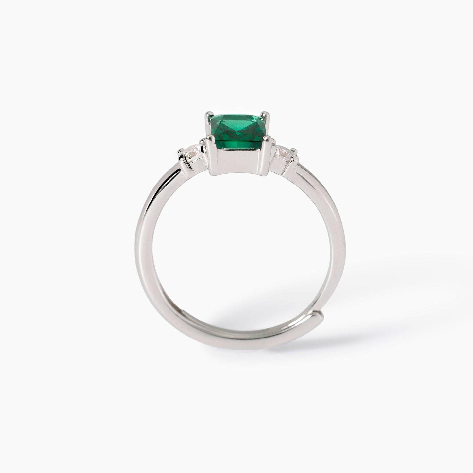 Anello da donna in argento rodiato con zirconi e smeraldo sintetico taglio princess.