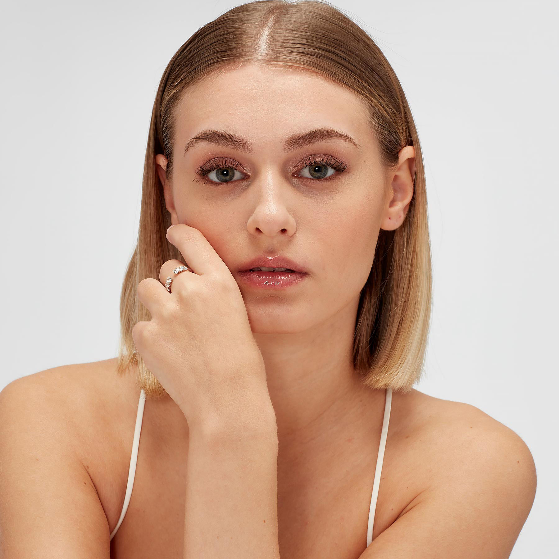 Anello in argento rodiato 925‰ con oval cubic zirconia.