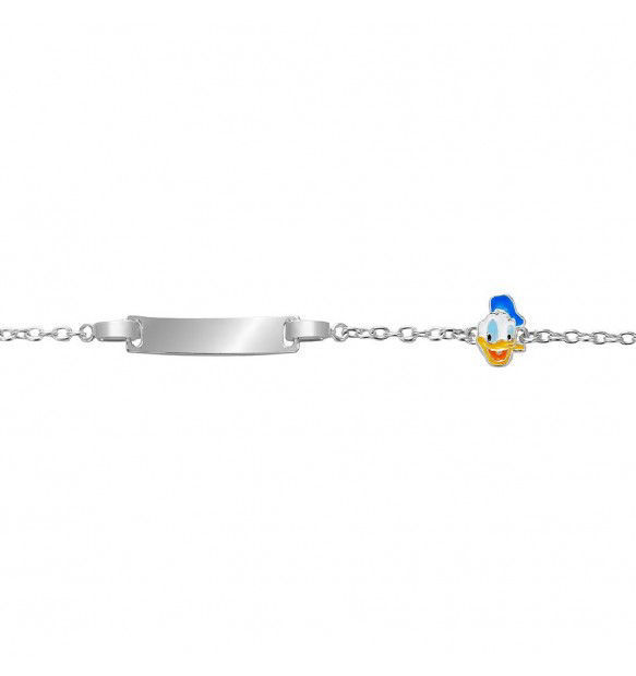 Targa centrale incidibile ed elemento laterale a forma di Donald Duck con smalto.