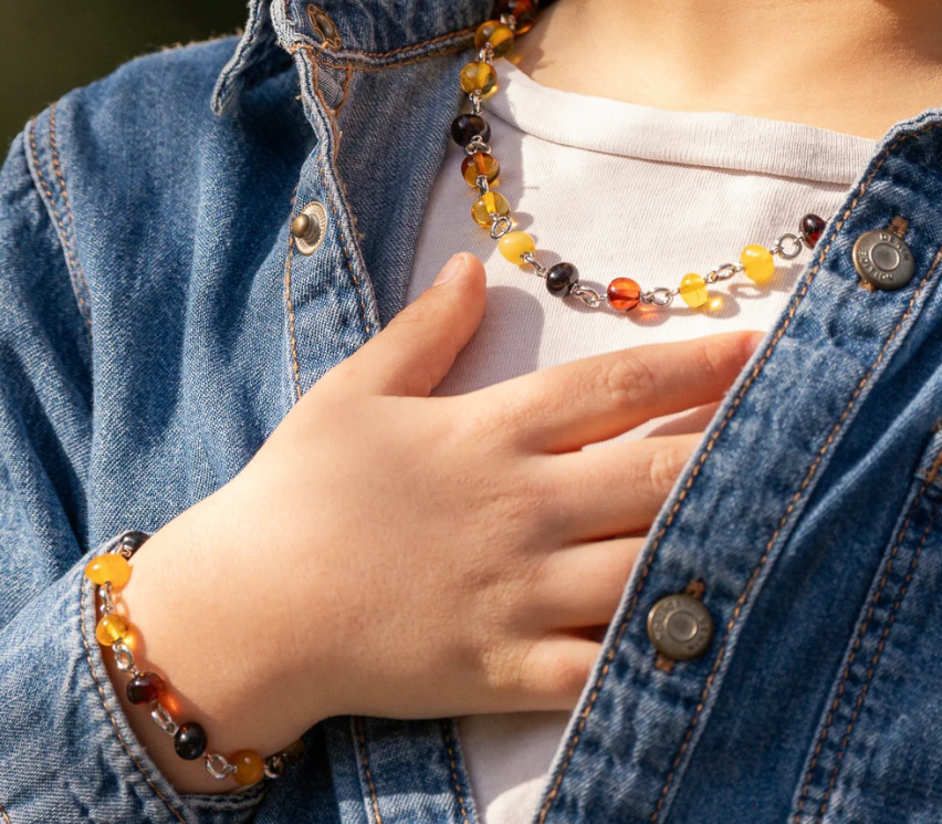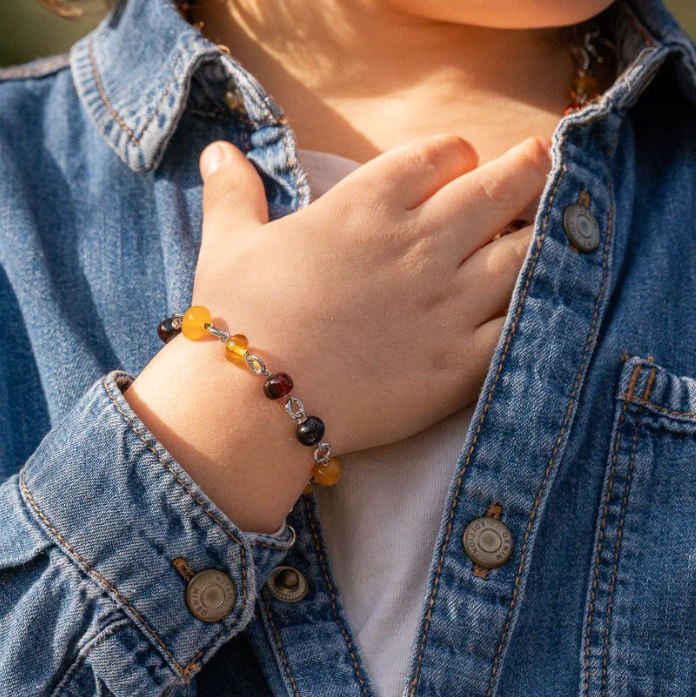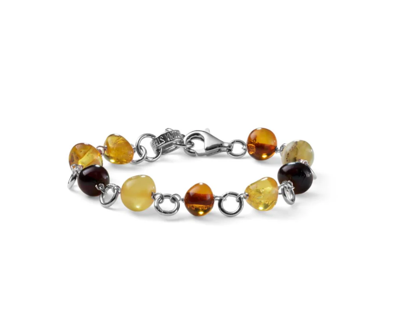 • Bracciale Bimbo cm.13+3 in Argento 925‰• Pepite di Ambra ø 8/9• Chiusura moschettone• Interamente realizzato a mano• Made in Italy• Disegnato per Maria Cristina Sterling da Alessandro Magrino
