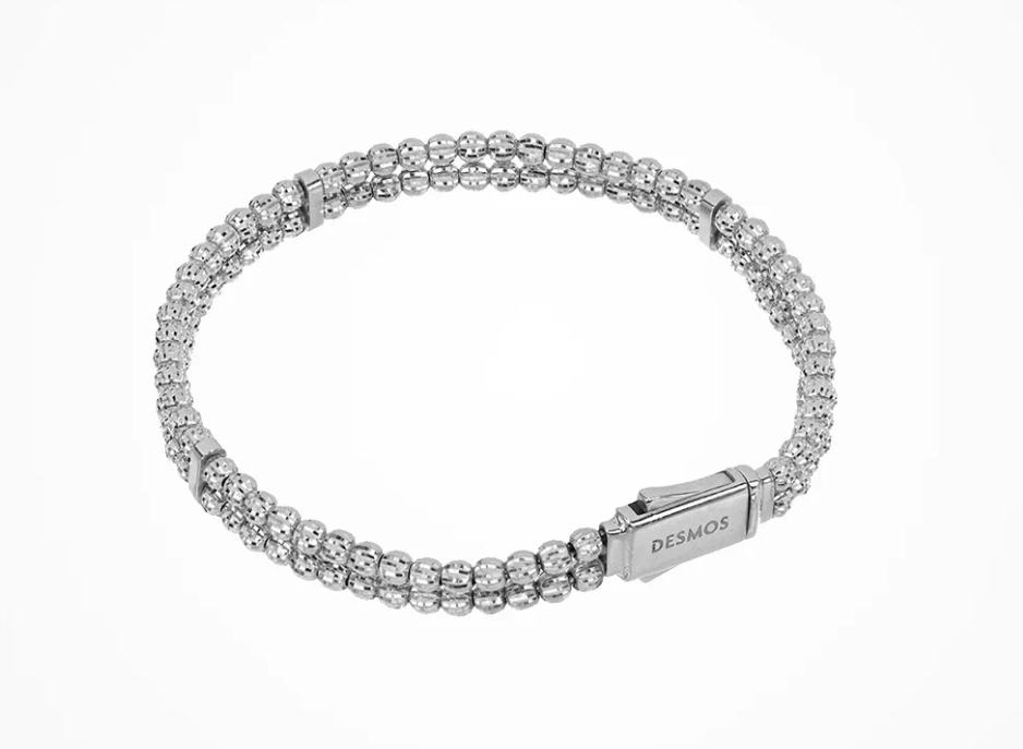 Bracciale in argento sterling a palline assemblato a mano con elementi di originale sfaccettatura Crystal, sviluppato internamente con la tecnica di diamantatura.