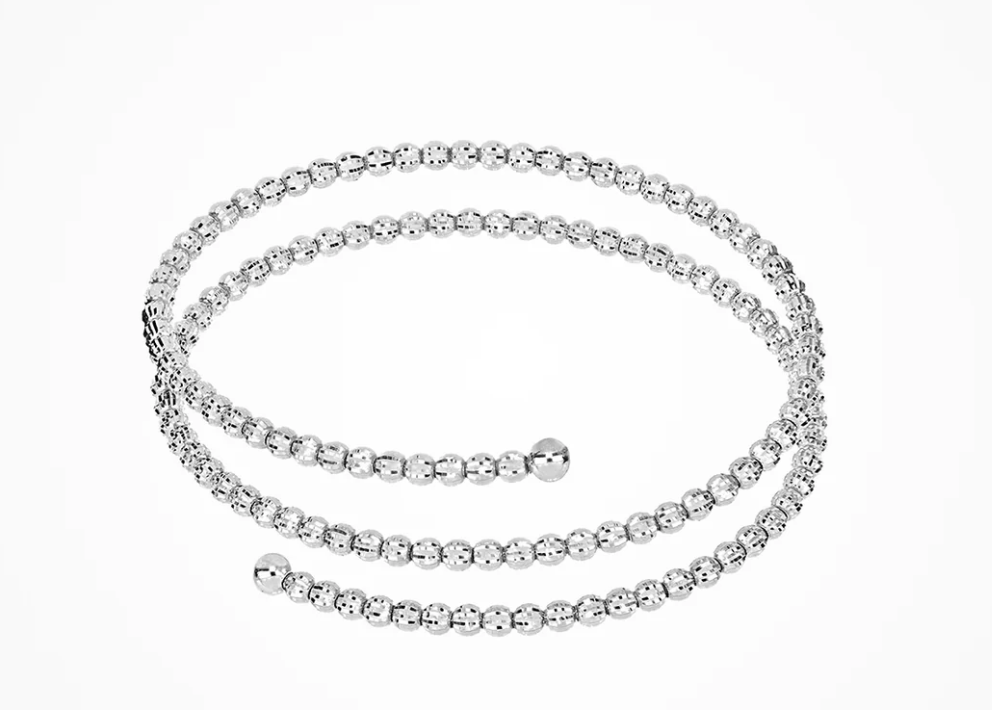 Bracciale Bangle in argento sterling a palline assemblato a mano con spirale di elementi dall’originale sfaccettatura Crystal.