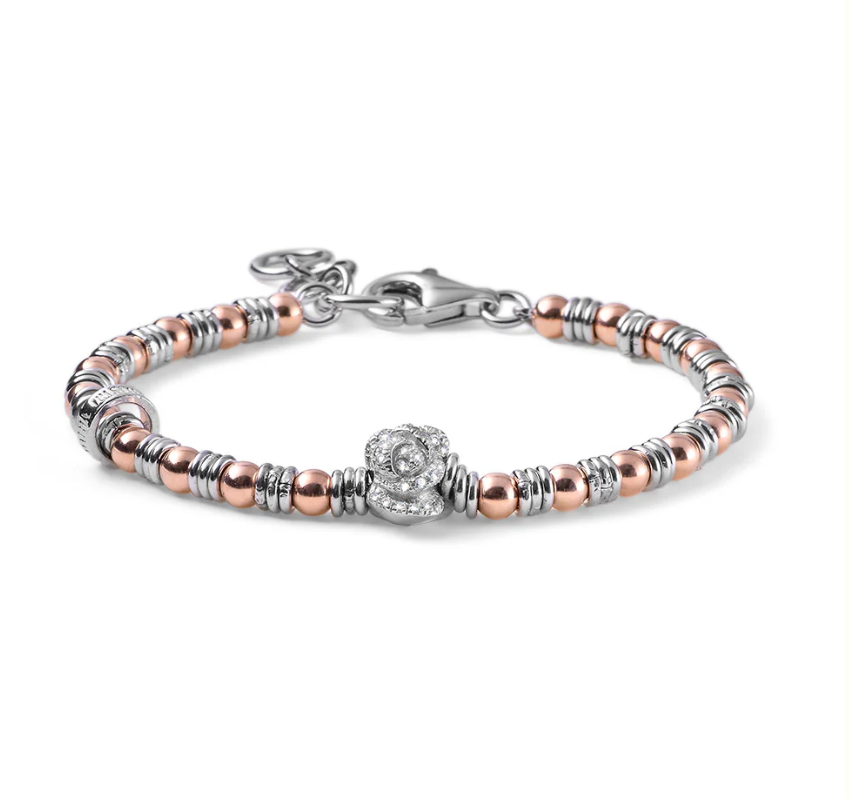 Bracciale con rosa Crystal e sfere di diam. 4 mm in Argento 925‰ e oro rosa