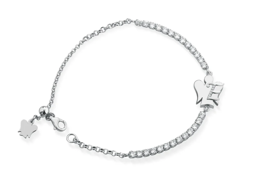 Realizzato in argento 925 con una finitura luminosa, questo bracciale tennis è impreziosito da una fila di zirconi bianchi che donano luce e raffinatezza ad ogni gesto. Il design delicato e simbolico unisce la spiritualità dell’angelo al potere personale di una lettera: un talismano che protegge, ispira e racconta una storia unica.