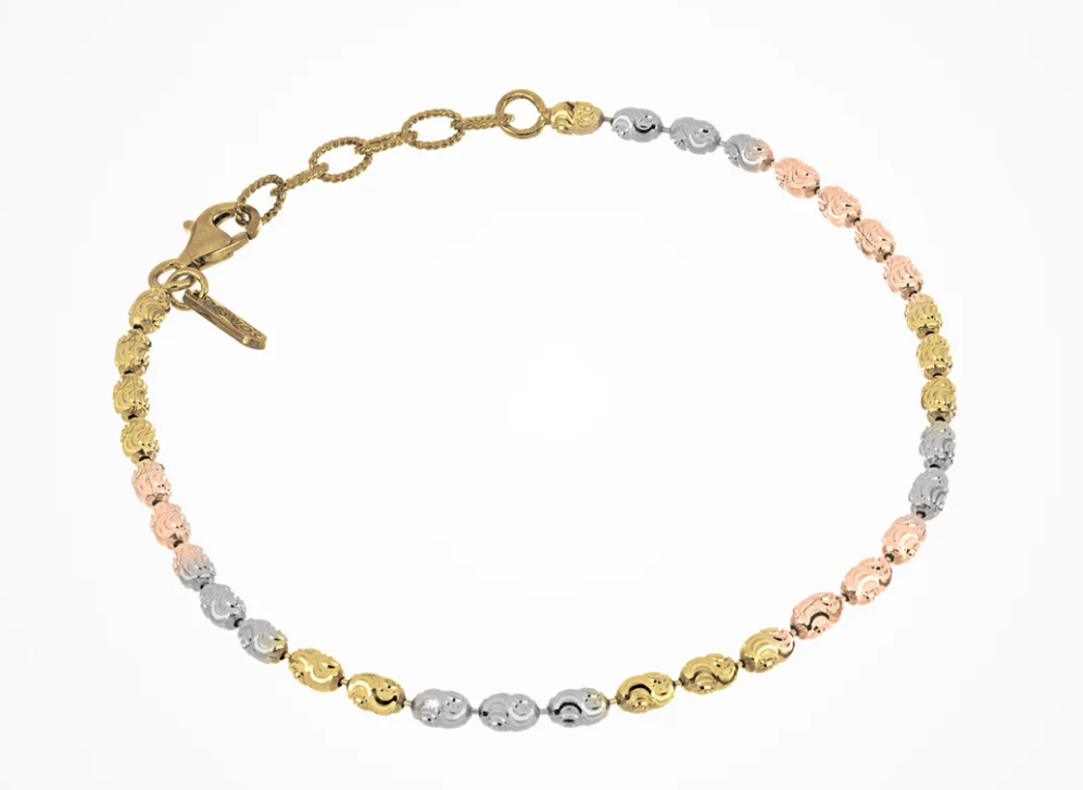 Bracciale in argento sterling a palline con elementi ovali incisi, sviluppato internamente con tecnica di diamantatura.