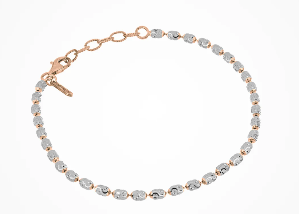 Bracciale in argento sterling a palline con elementi ovali incisi, sviluppato internamente con tecnica di diamantatura.