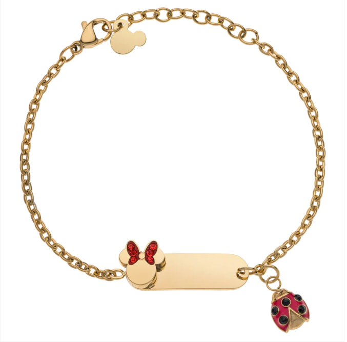Bracciale disney, collezione mickey mouse, in acciaio dorato e cristalli.