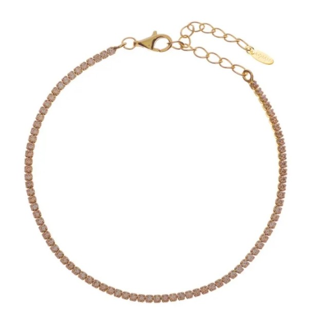 Bracciale Tennis da Donna in argento 925 placcatura oro giallo impreziosito da una fila di luminosi zirconi champagne 1 mm.