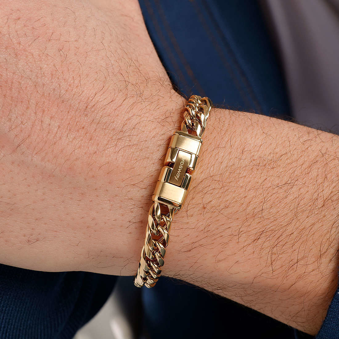 Bracciale Brosway da uomo della collezione Naxos, modello catena realizzato in acciaio anallergico 316L con trattamento PVD oro. Gioiello della misura di 22 cm.