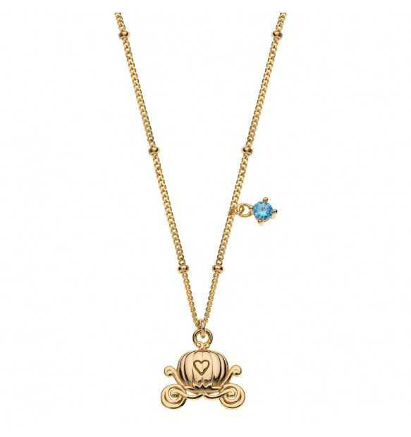Collana da donna e bambina realizzata in argento 925% dorato. Pendente forma di carrozza centrale e zircone blu.Ha lunghezza di 42 cm + 3 cm; chiusura a moschettone.