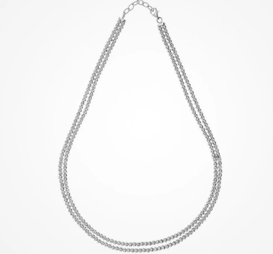 Collana in argento sterling a palline assemblata a mano con elementi dall’originale sfaccettatura Crystal, sviluppato internamente con la tecnica di diamantatura.