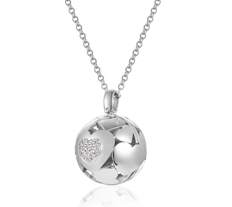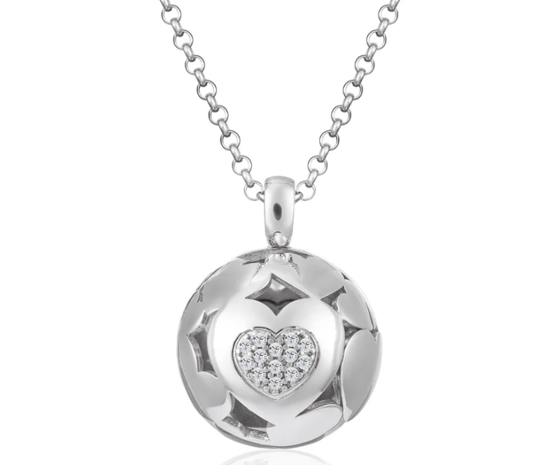 Il cuore realizzato con zirconi bianchi è il dettaglio che regala al design del gioiello lo stile che lo rende intramontabile, un regalo senza tempo da portare sempre al collo come ricordo del momento più bello.