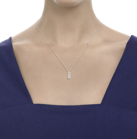 GIROCOLLO TRE PIETRE A SCALARE IN ORO BIANCO 18 KT E DIAMANTI TAGLIO BRILLANTE.