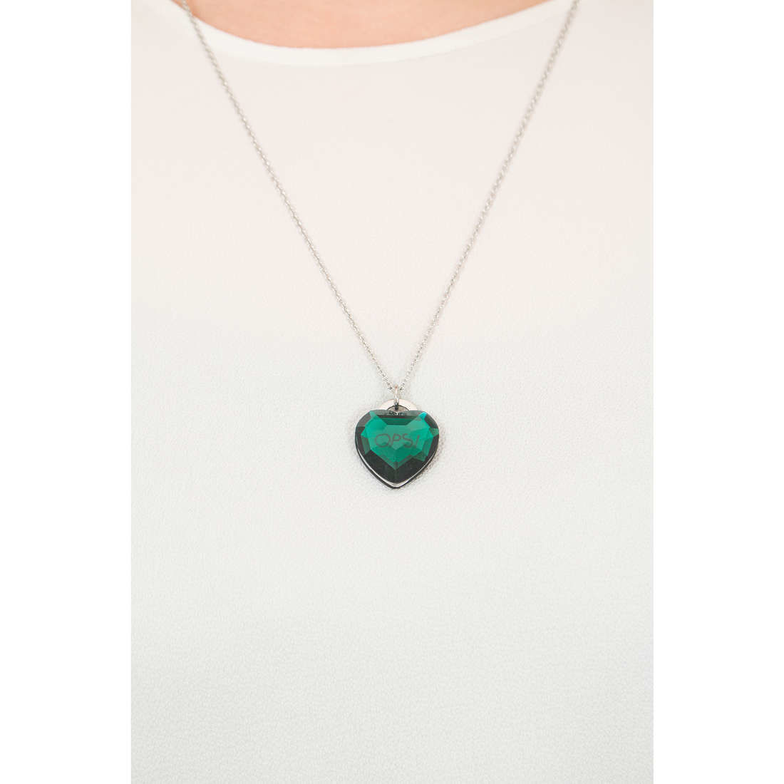 Collana Ops Objects da donna della collezione Shiny, realizzata in acciaio anallergico silver con ciondolo a forma di cuore di colore verde della dimensione di 2,4 cm. Lunghezza collana di 70 cm, con chiusura classica a moschettone.