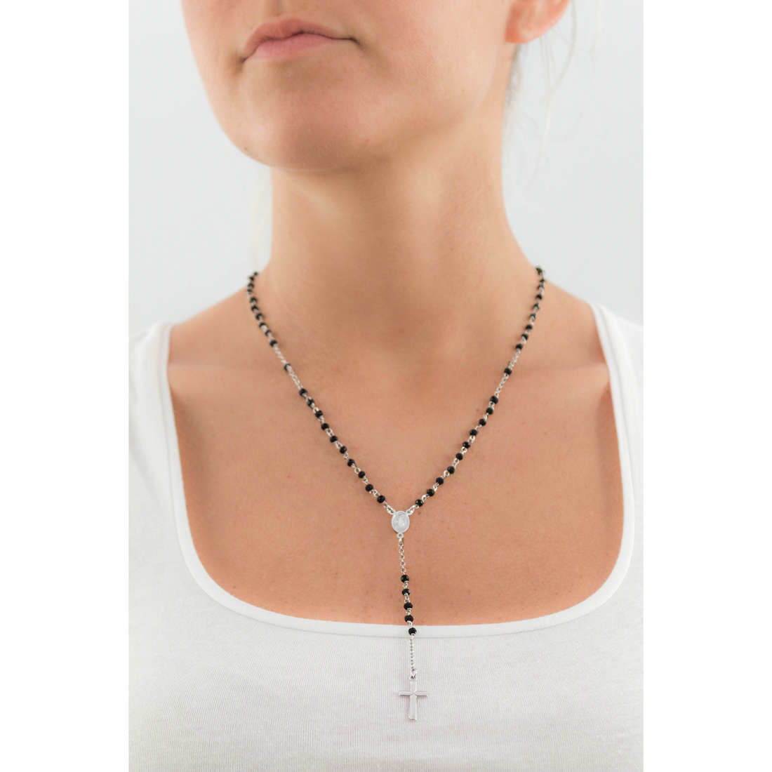 Collana Rosario di Amen da donna, della collezione Rosari. Gioiello realizzato in argento 925 con medaglietta di Papa Francesco e cristalli neri. La lunghezza di questa collana è di 48 cm+ 2 cm di allungo, e presenta una chiusura classica a moschettone.
