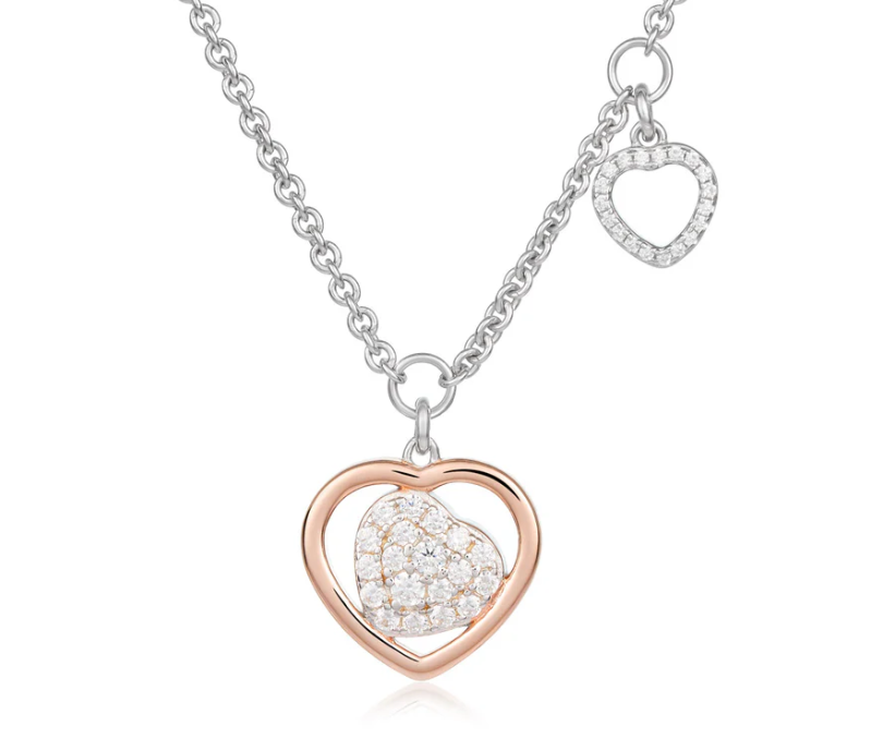 Lunghezza catena: 42/45 cmCuore argento rosato: base 1,4 cm – altezza 1,3 cm cuore charm: base 0,7 cm – altezza 0,6 cm