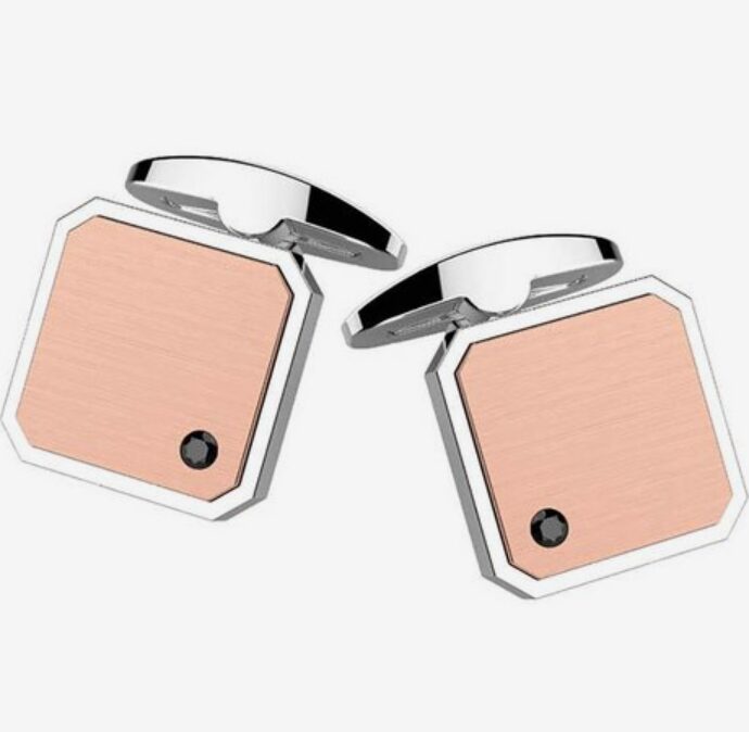 Gemelli per camicia in acciaio inossidabile 316L con placchetta placcata rosè incisibile e zircone nero.
