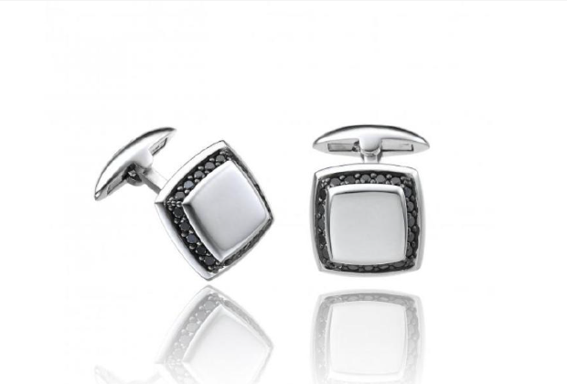 • Gemelli in argento e zirconi neri.