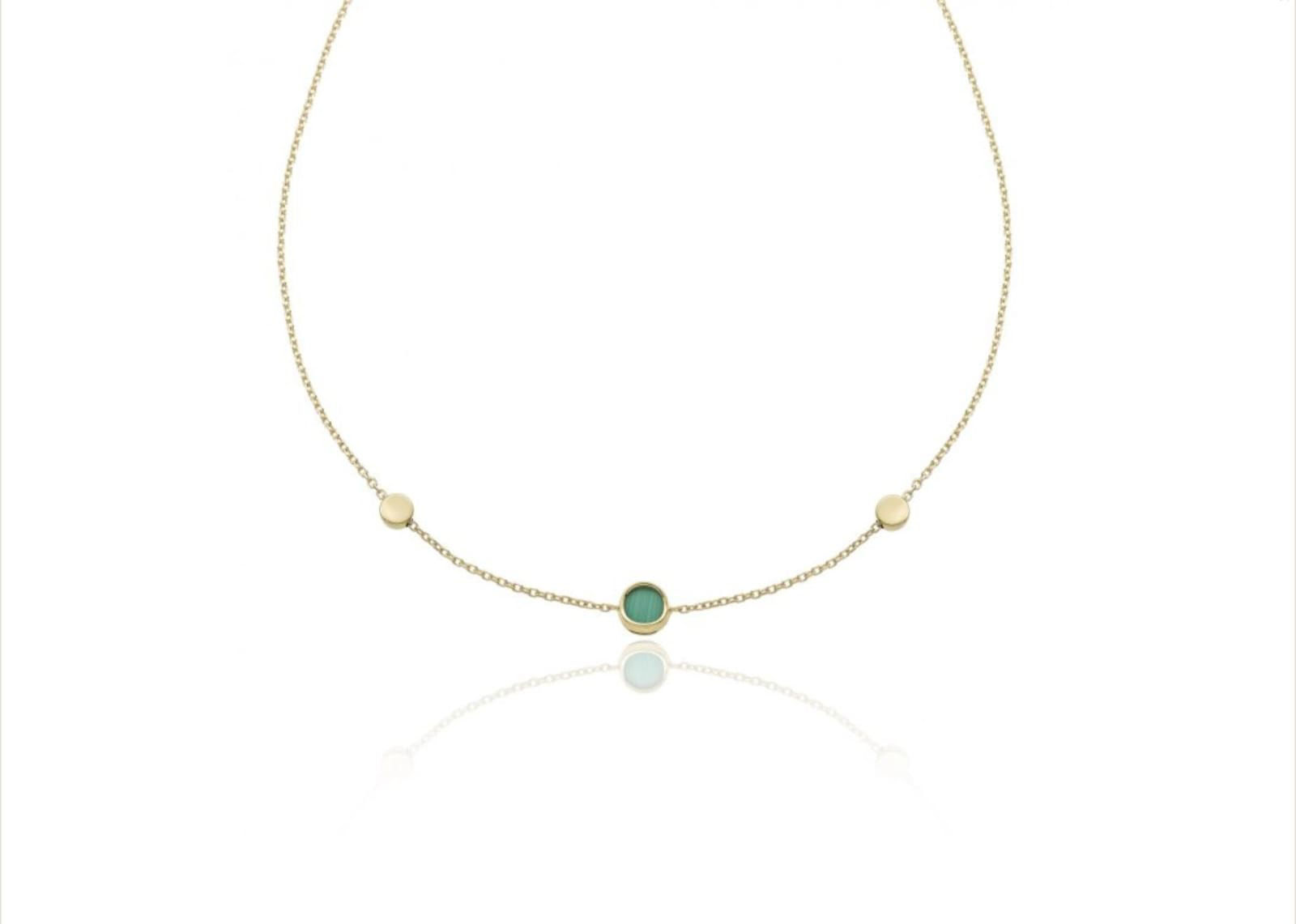 Girocollo in oro giallo 18 kt con diamanti e Malachite.