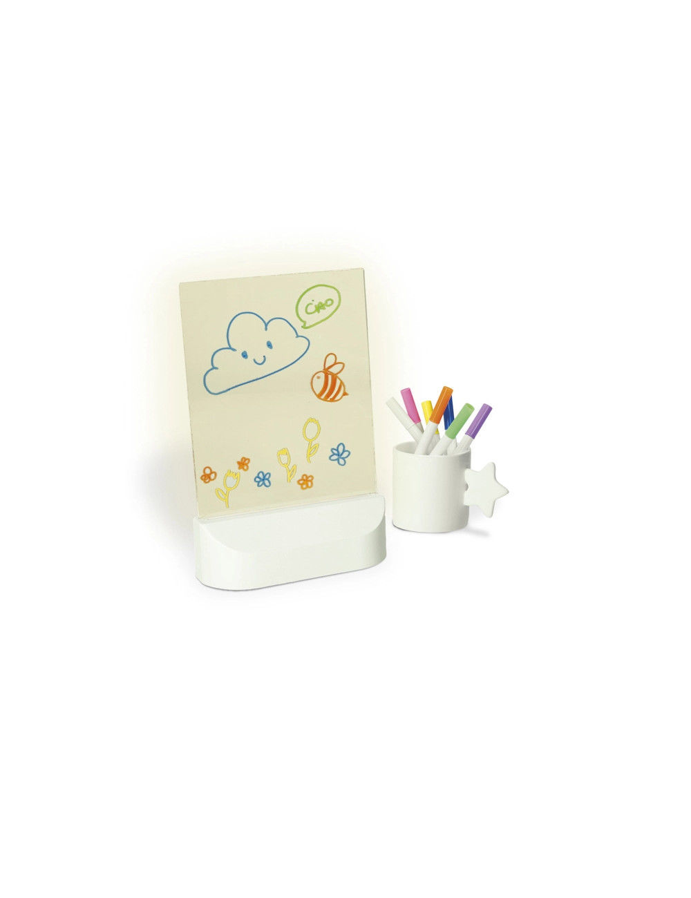 Luminosa, pratica e maneggevole, è corredata di pennarelli ed apposito panno per cancellarne i segni…così potrai sempre ricominciare!