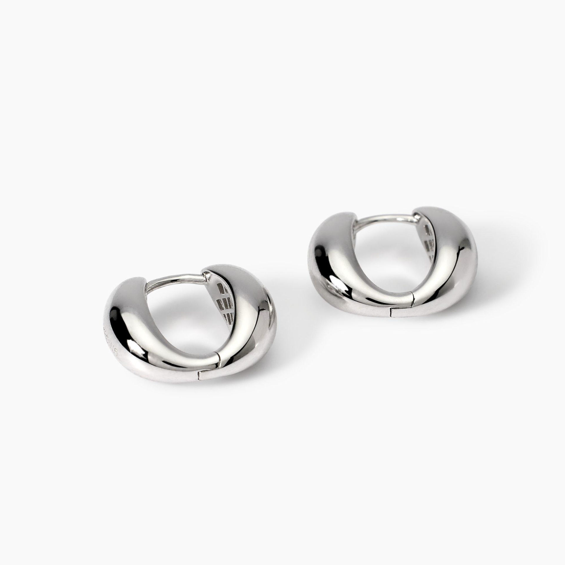 Orecchini a cerchio in argento a forma di goccia allungata.