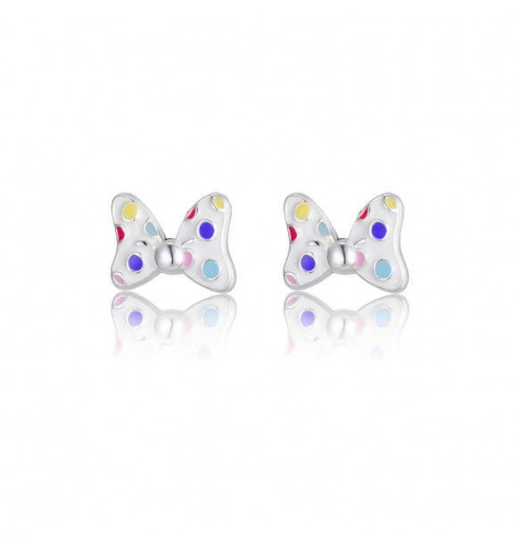 Orecchini da bambina a forma di fiocco realizzati in argento 925% con smalto colorato.Chiusura con farfallina a lobo.