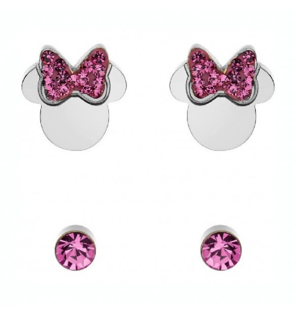 Un paio rappresenta la sagoma di Minnie ed è impreziosito da cristalli rosa; punti luce di cristalli blu.