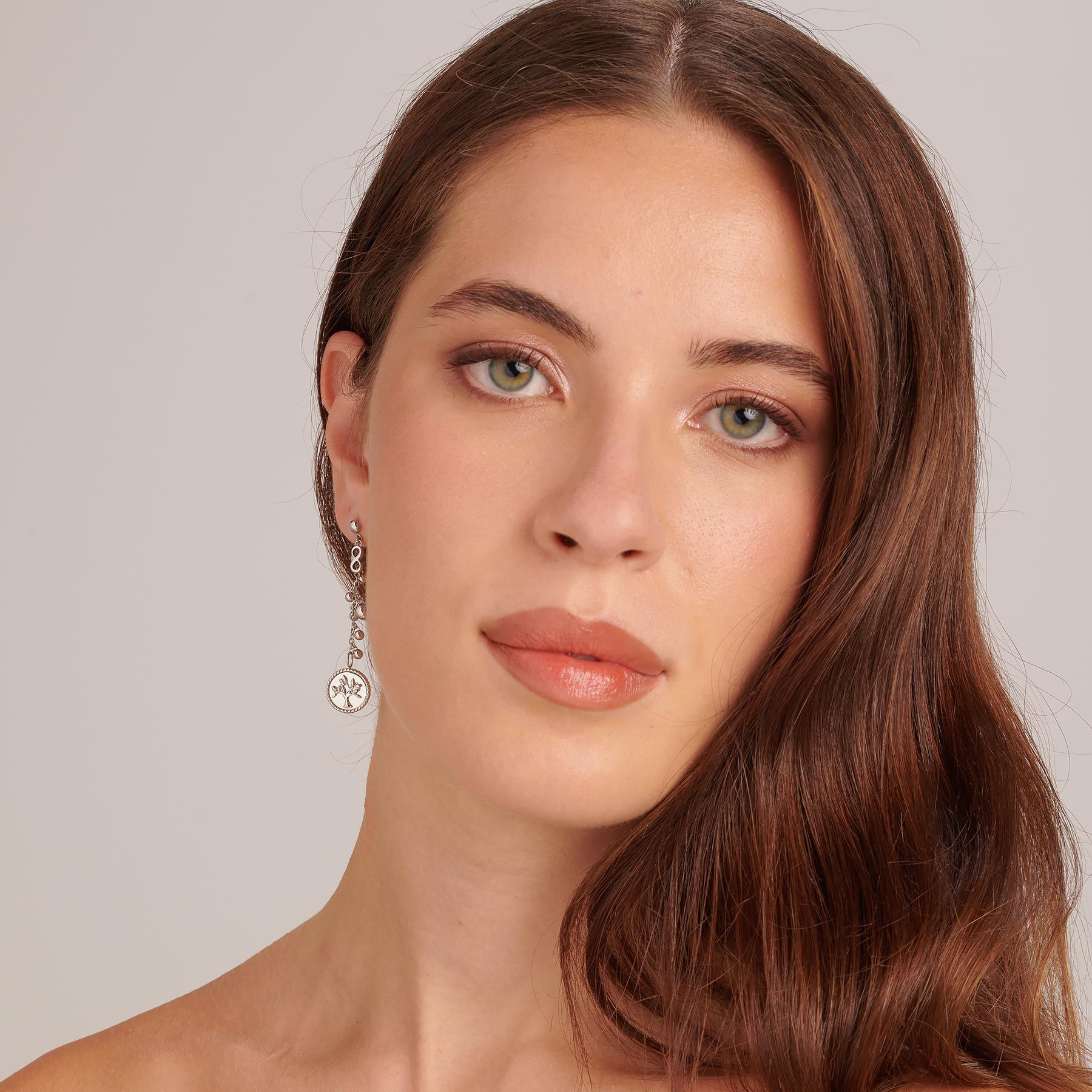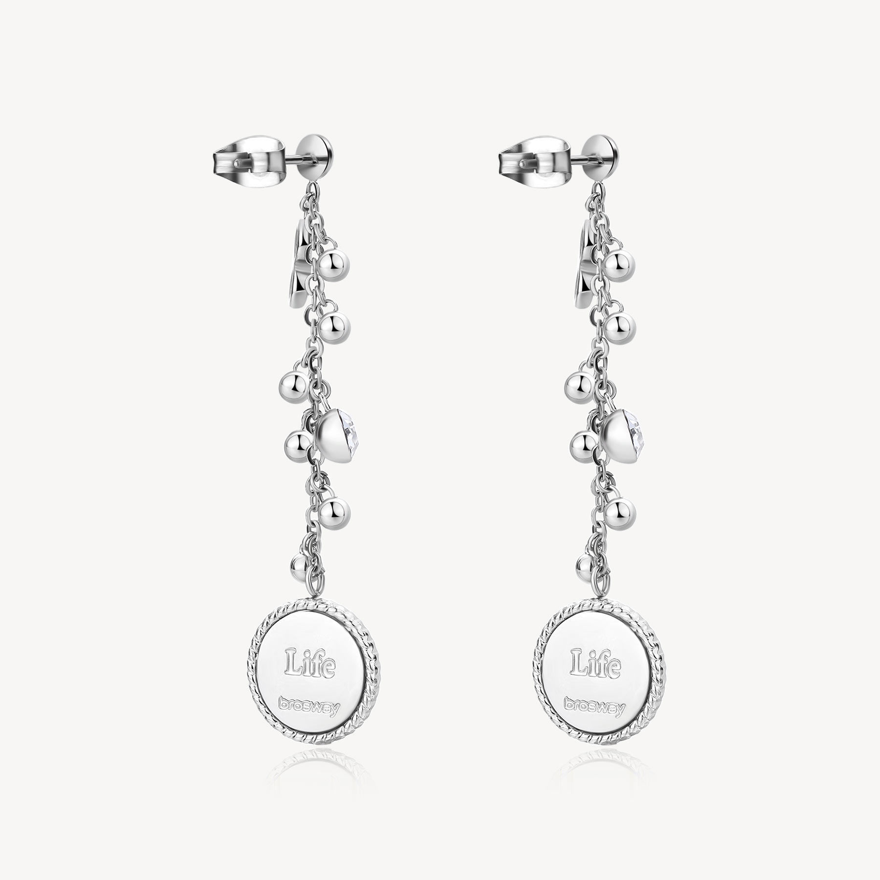 Orecchini pendenti in acciaio 316L con albero della vita, infinito e cristalli.