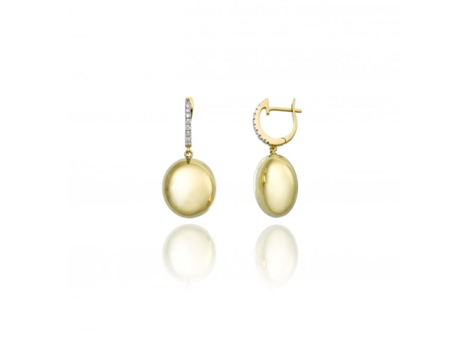 Orecchini a cerchio con pendente in oro giallo 18 kt e diamanti.