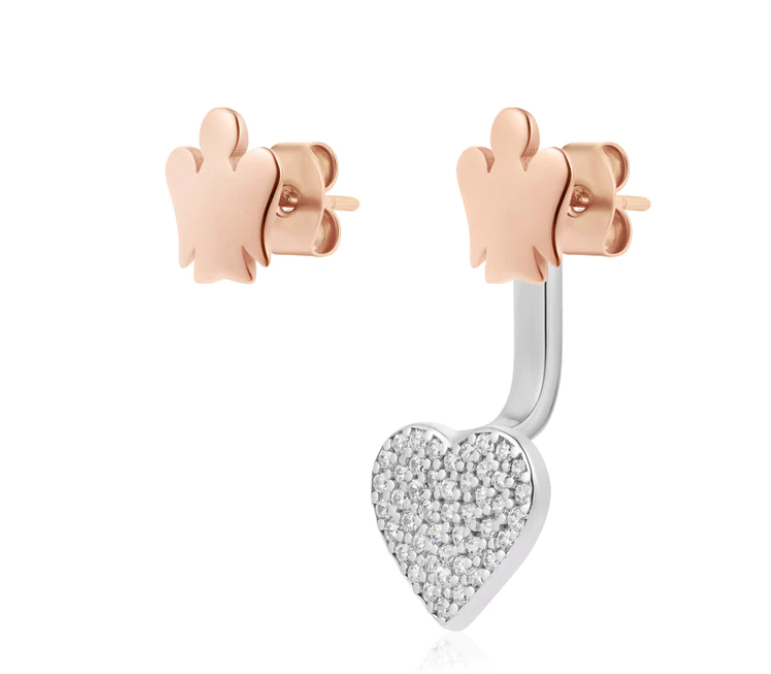 Gli orecchini asimmetrici con cuore pavé e cuore rosato sono una coppia di gioielli unici che catturano l’eleganza e il simbolismo dell’amore eterno. Realizzati con materiali di alta qualità, gli orecchini presentano un design affascinante e differenziato.
