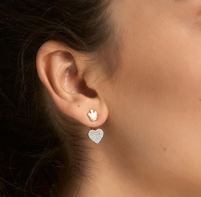 lunghezza totale orecchino 3 cmcuore: base 1 cm – altezza 0,9 cmangelo: base 0,7 cm – altezza 0,7 cm