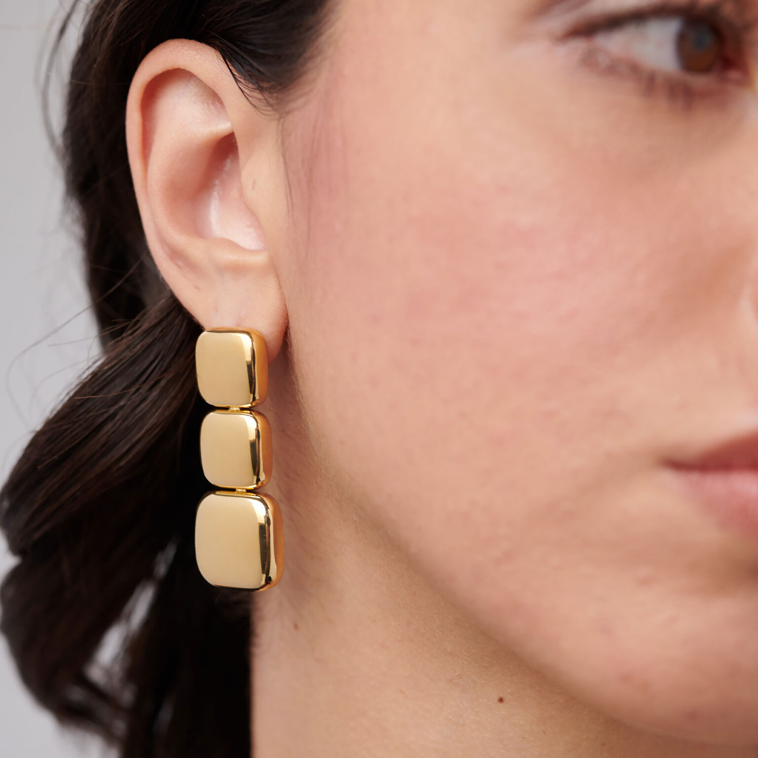 Orecchini pendenti in acciaio 316L e finitura pvd oro 14K.