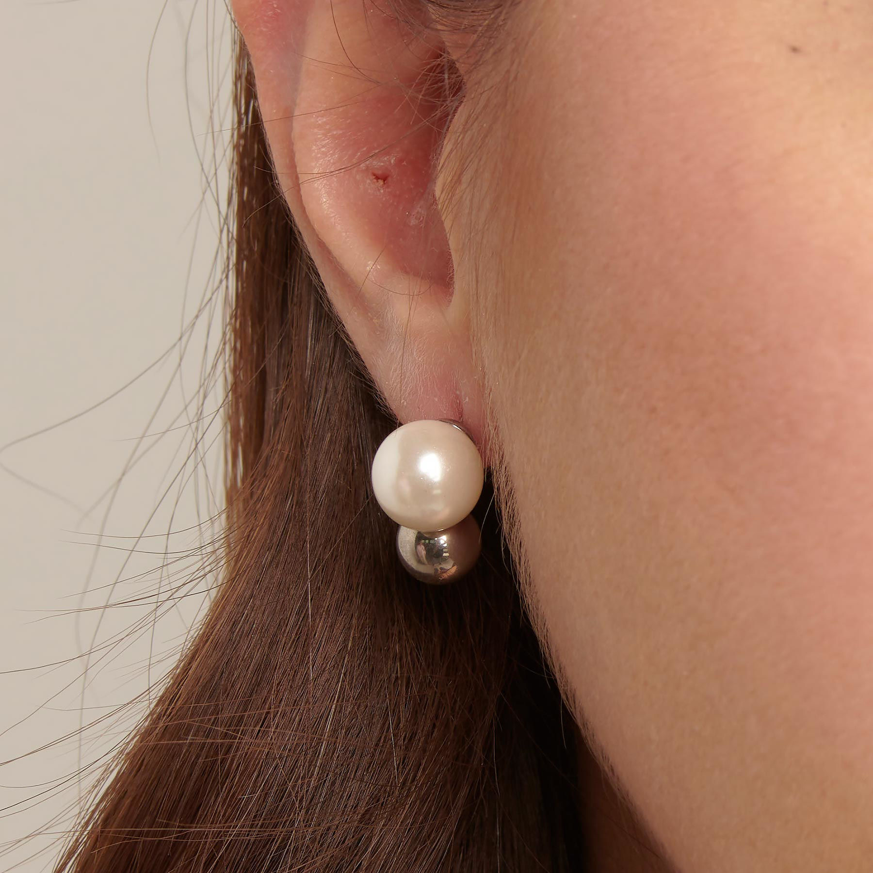 Orecchini a lobo in acciaio 316L e perle di conchiglia.