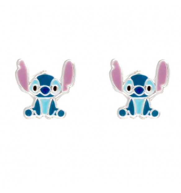 Orecchini a lobo da donna e bambina realizzati in argento 925% a forma di Stitch con smalto azzurro.