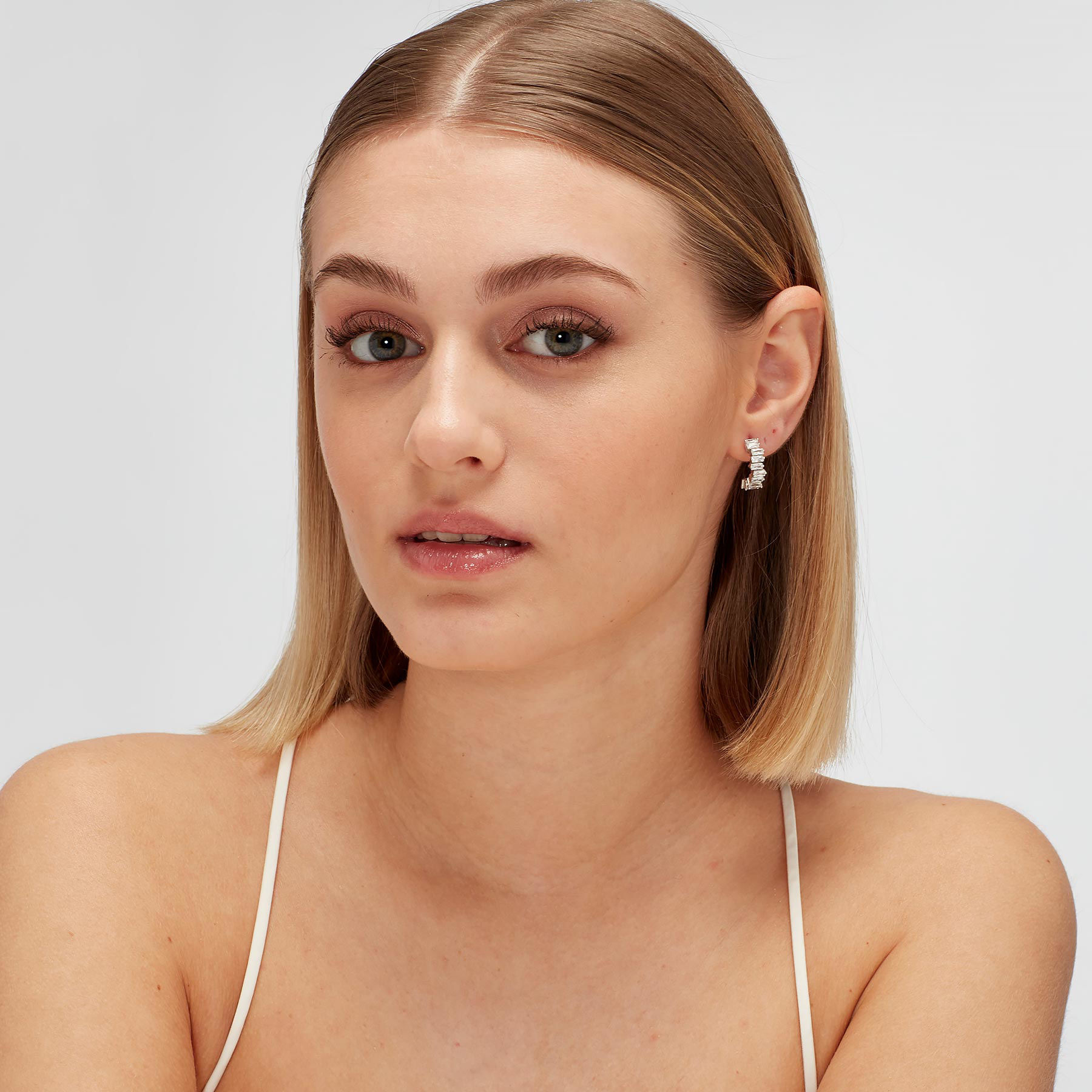 Orecchino singolo a cerchietto in argento rodiato 925‰ con baguette cubic zirconia.