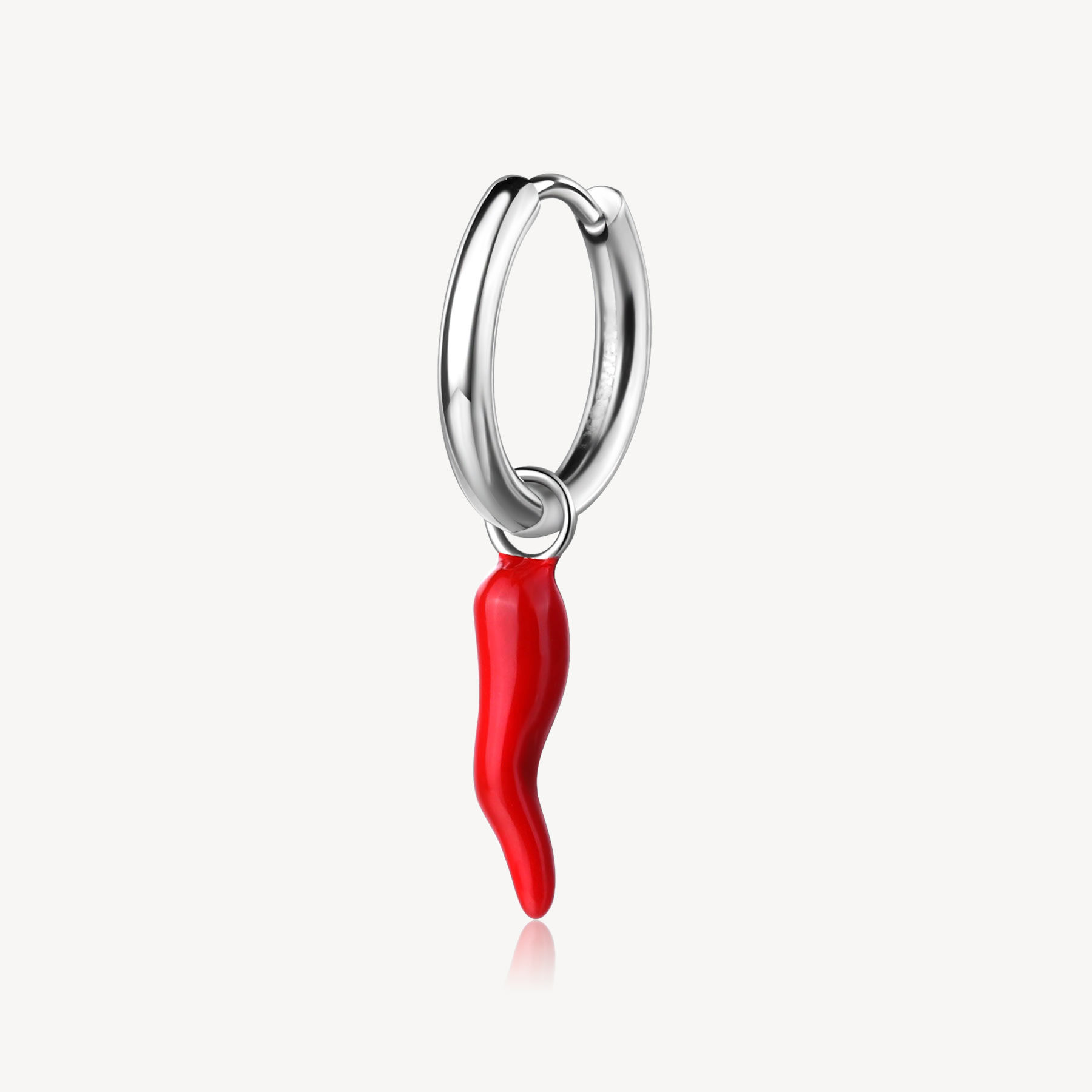 Orecchino singolo in acciaio 316L con pendente a forma di cornetto con smalto rosso.