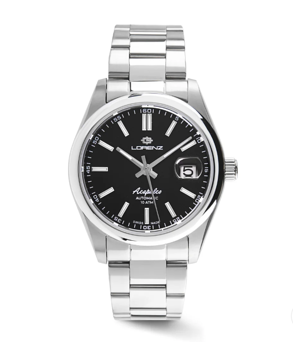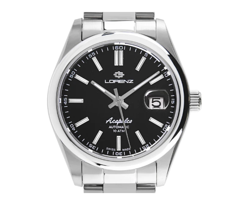 La collezione Acapulco di Lorenz è un omaggio alla celebre località messicana, simbolo di glamour, spiagge esclusive e vita notturna raffinata. Pensata per chi ama distinguersi con stile, questa linea iconica unisce design sportivo ed eleganza classica. Il modello presenta una cassa in acciaio massiccio da 39 mm con lunetta zigrinata o liscia, abbinata a un raffinato bracciale acciaio. Il vetro zaffiro con lente garantisce massima leggibilità del datario posizionato a ore 3, mentre il fondello e la corona a vite assicurano un’impermeabilità fino a 100 metri. Al suo interno batte un affidabile movimento automatico Sellita SW200, una garanzia di precisione svizzera. Il bracciale solido con chiusura a doppio pulsante completa l’esperienza, offrendo comfort e sicurezza al polso. Un orologio pensato per chi ama l’eleganza sportiva e vuole lasciare il segno, in ogni occasione.