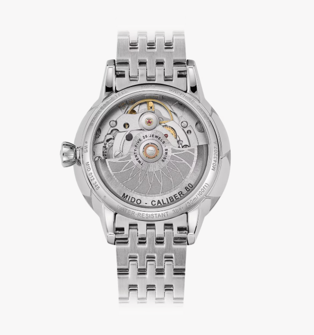 MIDO utilizza esclusivamente acciaio inossidabile 316L di alta qualità per i suoi componenti in acciaio, al fine di assicurare una totale e duratura compatibilità con la pelle. Questo materiale resiste alla corrosione, non viene interessato dai campi magnetici e dimostra un’eccellente durata, rendendo gli orologi MIDO in acciaio inossidabile creazioni robuste capaci di superare le prove del tempo e degli elementi. Le numerose proprietà tecniche di questo metallo sono affiancate dalla sua estetica elegante ed estremamente gradevole, che lo rende adatto a un’ampia gamma di impieghi.