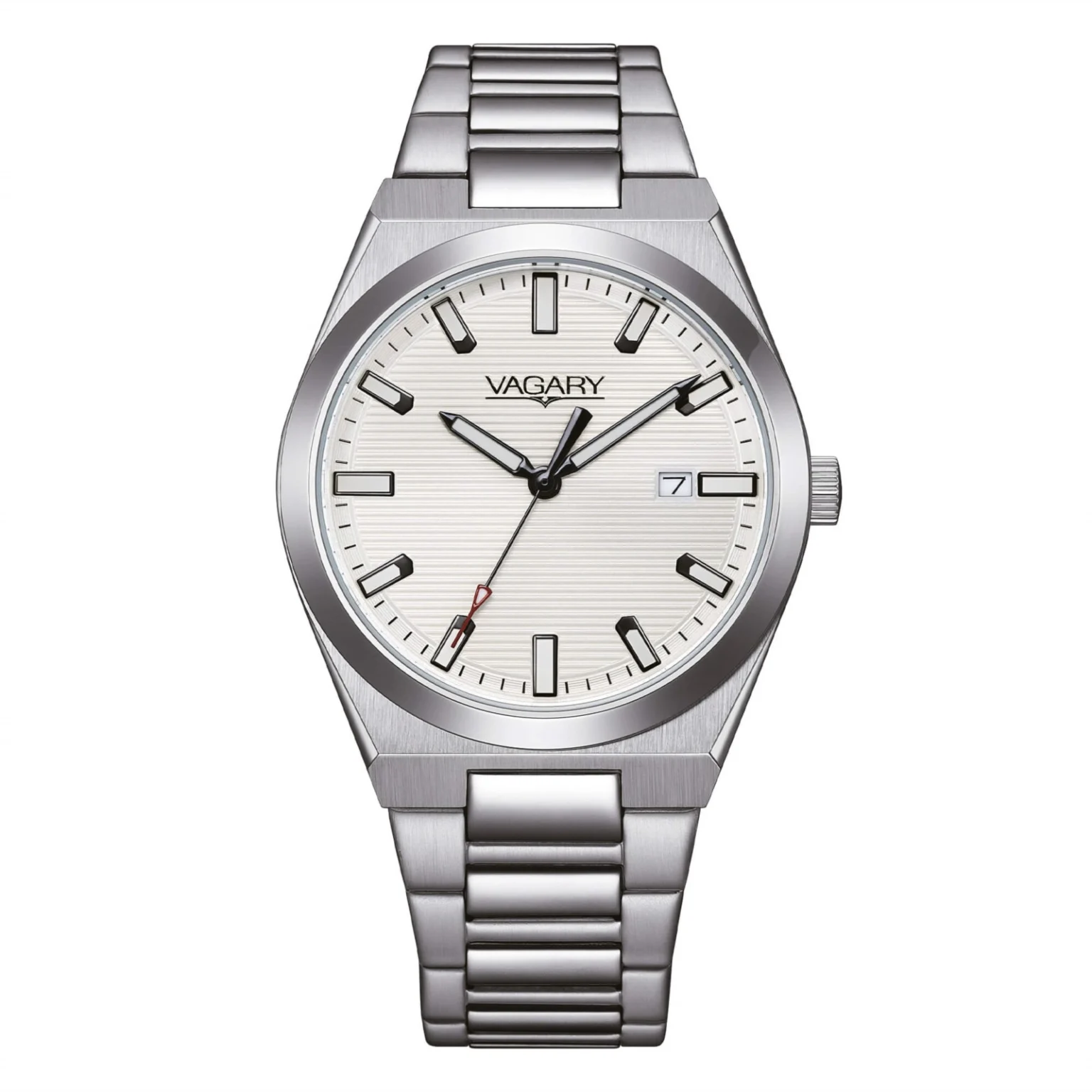 Orologio uomo vagary, IB9-719-11, collezione timeless, movimento al quarzo, solo tempo, cassa in acciaio 37mm, quadrante bianco con datario, bracciale in acciaio, resistenza all’acqua 5 bar.