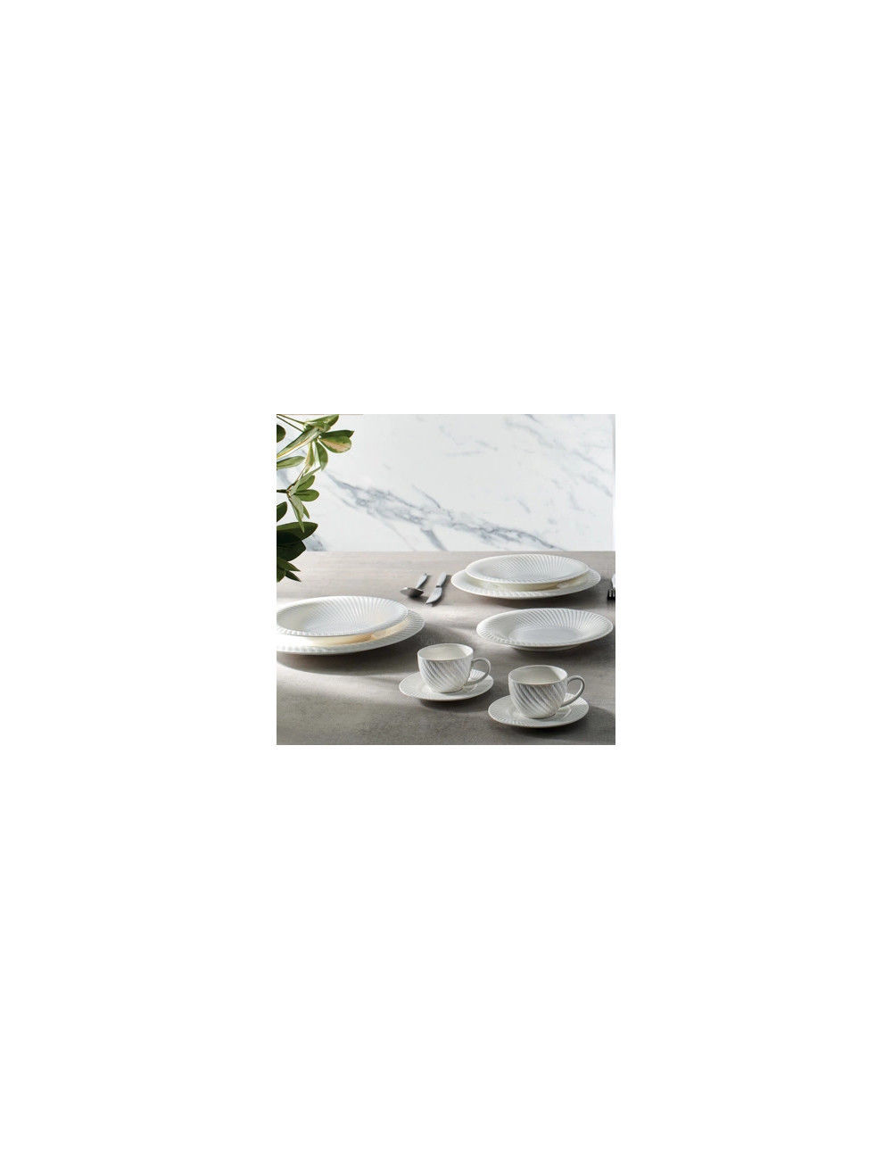 Un gioco ottico affascinante, che diventa ancora più chic se unito alla candida eleganza della bianca porcellana. Il set da tavola Optical si compone di 6 piatti piani, 6 piatti fondi e 6 piattini. Leggiadro e particolareggiato, si rivela perfetto per qualsiasi living space! Abbinalo a ciò che preferisci, creando tavole classiche o moderne che sbalordiranno gli ospiti.