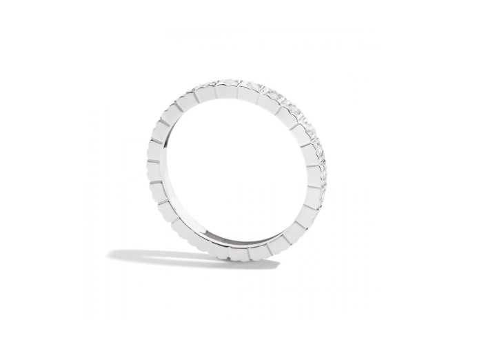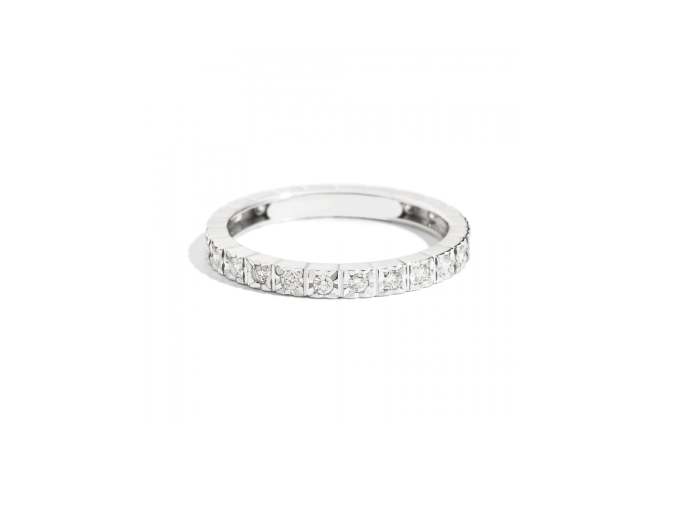 Anello veretta, in oro bianco 18 kt e diamanti taglio brillante.